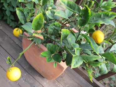 When I walk by the many lemon trees in Berkeley, I always regret that the yard in our apartment building doesn’t have one; the idea of a potted lemon tree really intrigues me! I’ll have to drop a few hints to Kostas. 🙂