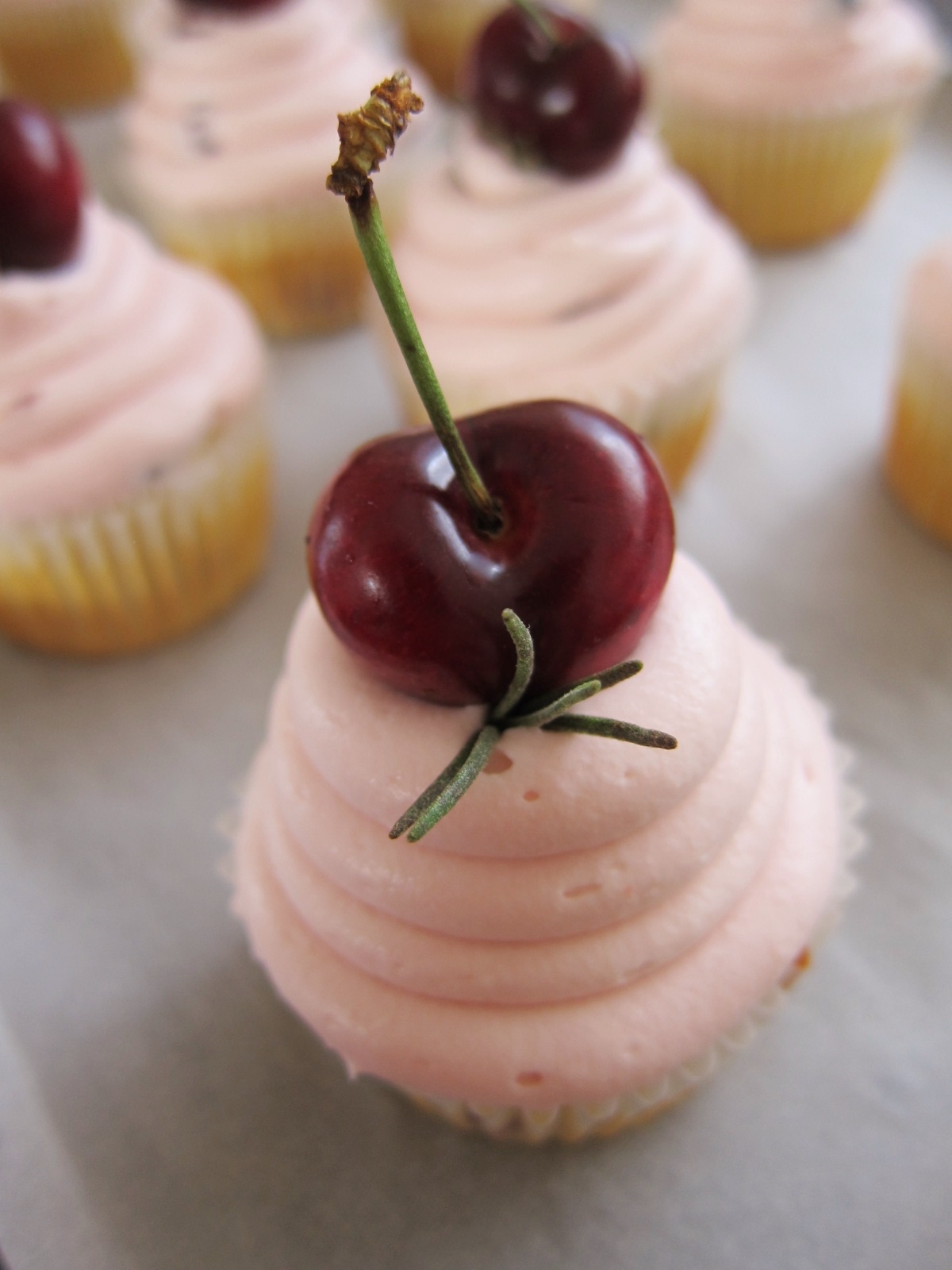 Fresh Cherry Cupcakes with a Bit of Rosemary