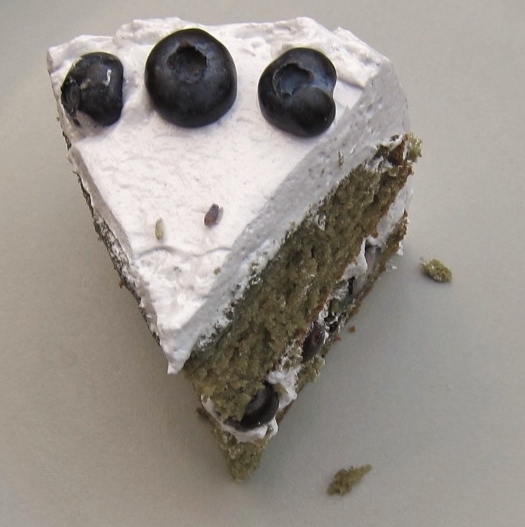 little-but-tall cake size, but if you don’t have 6” cake pans, I’m certain the recipe will work in one 8” or 9” pan with baking time extended, or split into two 8” pans with baking time shortened. I found my blueberry juice at Trader Joe’s, but tart cherry juice or pomegranate juice will work equally well. In fact, while no juice’s flavor will come through strongly in the cake, you could match one of the other juices with corresponding fresh fruit in place of the blueberries (cherry lavender cake, for instance?). Instead of meringue frosting, this cake is also delicious dusted with powdered sugar or slathered with cream cheese icing. Also, I imagine that finely grated lemon or orange zest would add a welcome citrus flavor to the batter. Finally, it goes without saying that a heap of ice cream, like vanilla or blueberry, makes a wondrous accompaniment. (When doesn’t it, really?)