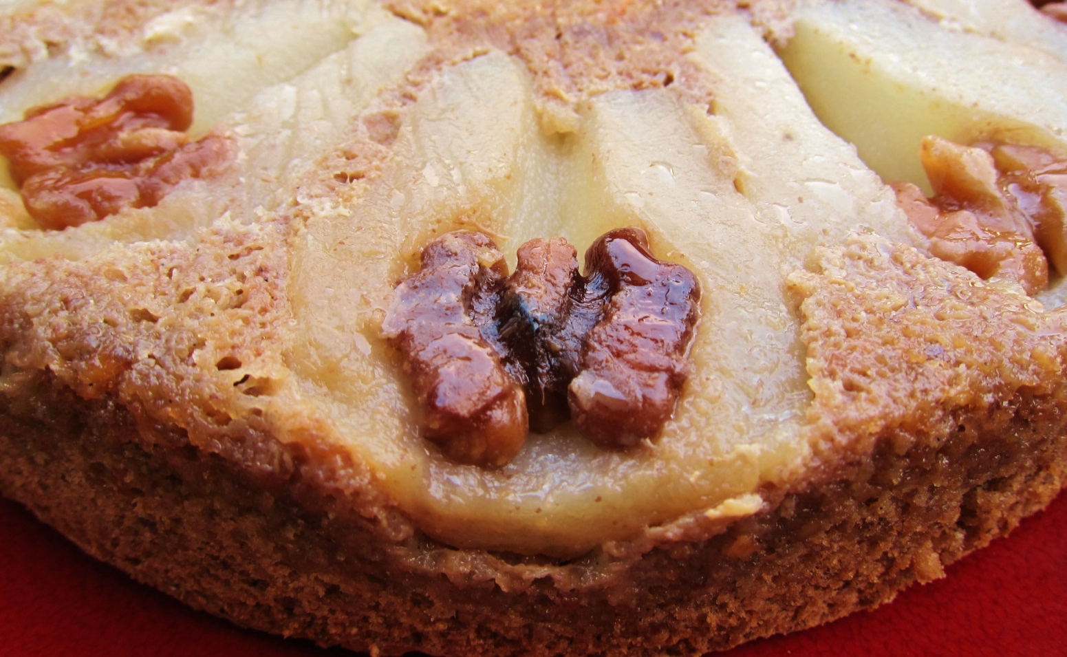 Well, someone I work with brought me a whole pound of shelled walnuts recently. “I know you like to bake,” she said, “and I was near an orchard in Northern California.” I was so touched that I forgot my feelings for walnuts as I gratefully accepted the sweet gift. I wasn’t sure what I’d do with them, but I trusted I could turn them into something tasty. By toasting them until they smelled like baking bread, grinding them into a flour-like meal, and pairing them with orange zest and sweet pears, I became transformed just as the nuts did. Walnuts can be delicious. I can hardly believe my words, but they’re true.