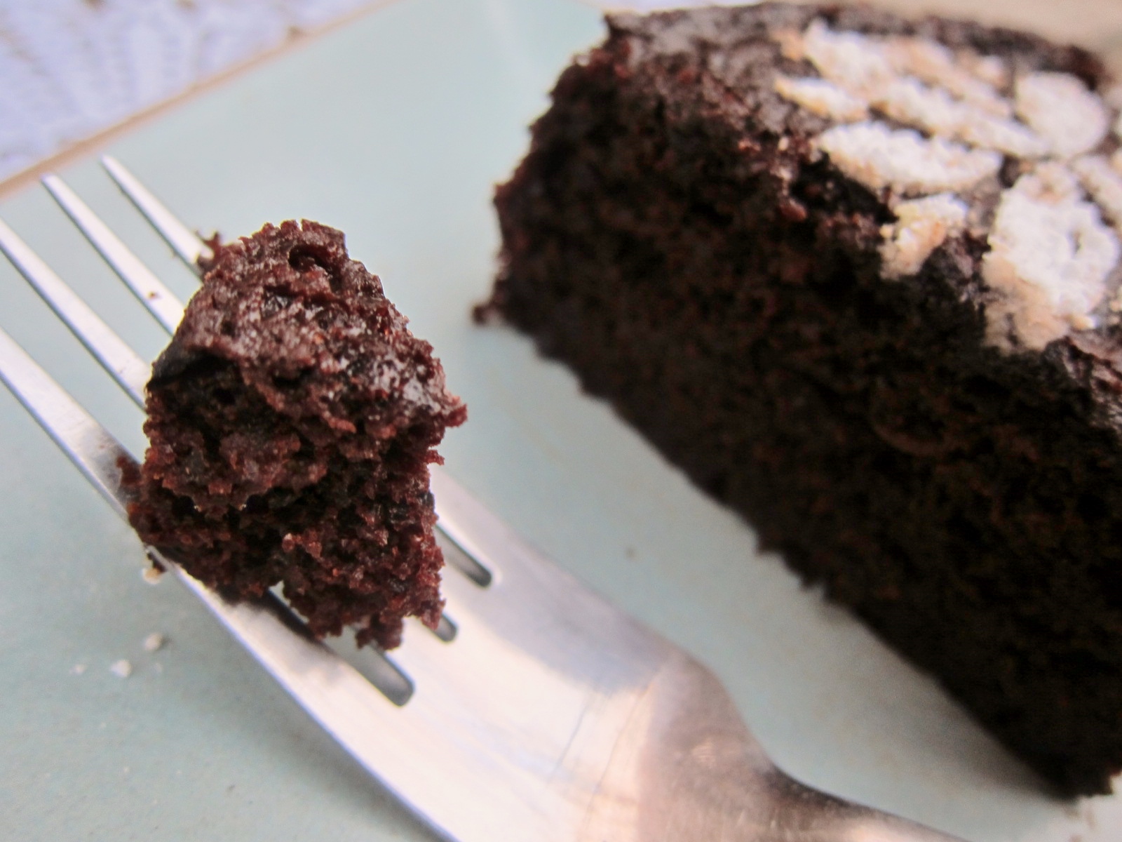 I decided on a black-on-black batter: dark cocoa and black coffee to mingle with the tiny bits of olives, plus a tad of butter, flour and sugar. A heap of orange zest would add a citrusy tang, and a good dose of vanilla would soften it all. The result was just as I’d hoped: a spongy, moist and deep-dark dessert enjoyed by many. Here is the recipe.