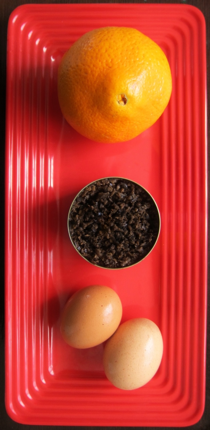 Orange and Black Olive Cake (makes a one-layer 8″ cake; serves 10)