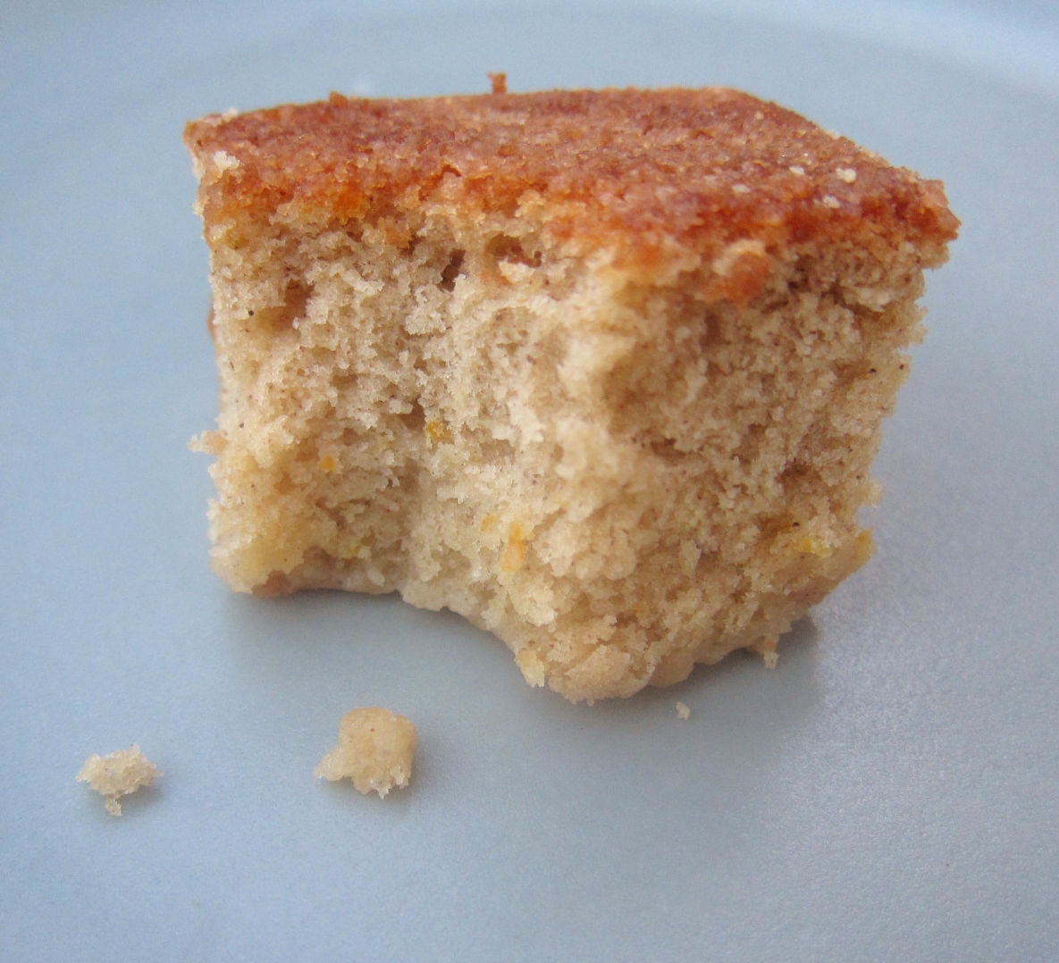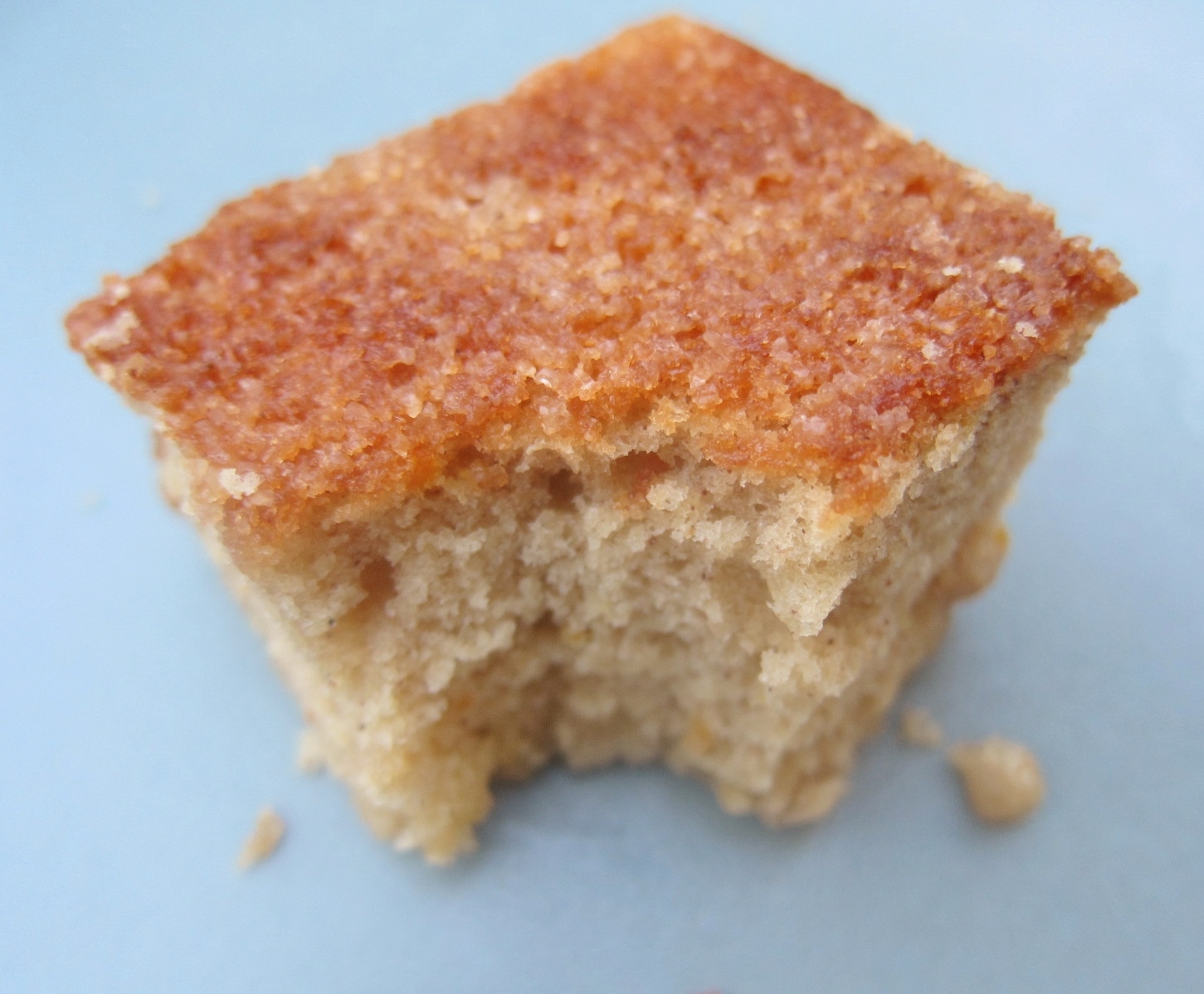 buttered rum cake (34)When the drink was served, I found myself nestling a steaming mug with a beautiful orange slice floating at its surface. Its scent was rich with melted butter and a bit of scrumptious spice. My senses were enraptured as I was brought to that magical moment when you know your dessert is almost done baking: the kitchen is toasty and the air is so fragrant you wish you could eat it instead of inhale.  I knew right then that a buttered rum dessert was to be my next creation.  It would have to be relaxed, warming and delicious — just like the place that inspired it.  A soft sheet cake proved to be the perfect format: one with a moist crumb and a balance of toothsome textures in every flavorful bite.