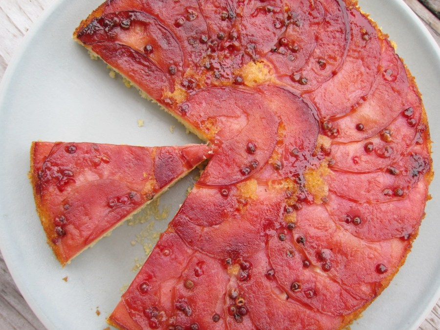 Pink Pearl Apple Skillet Cake with Pink Peppercorn and Lemon