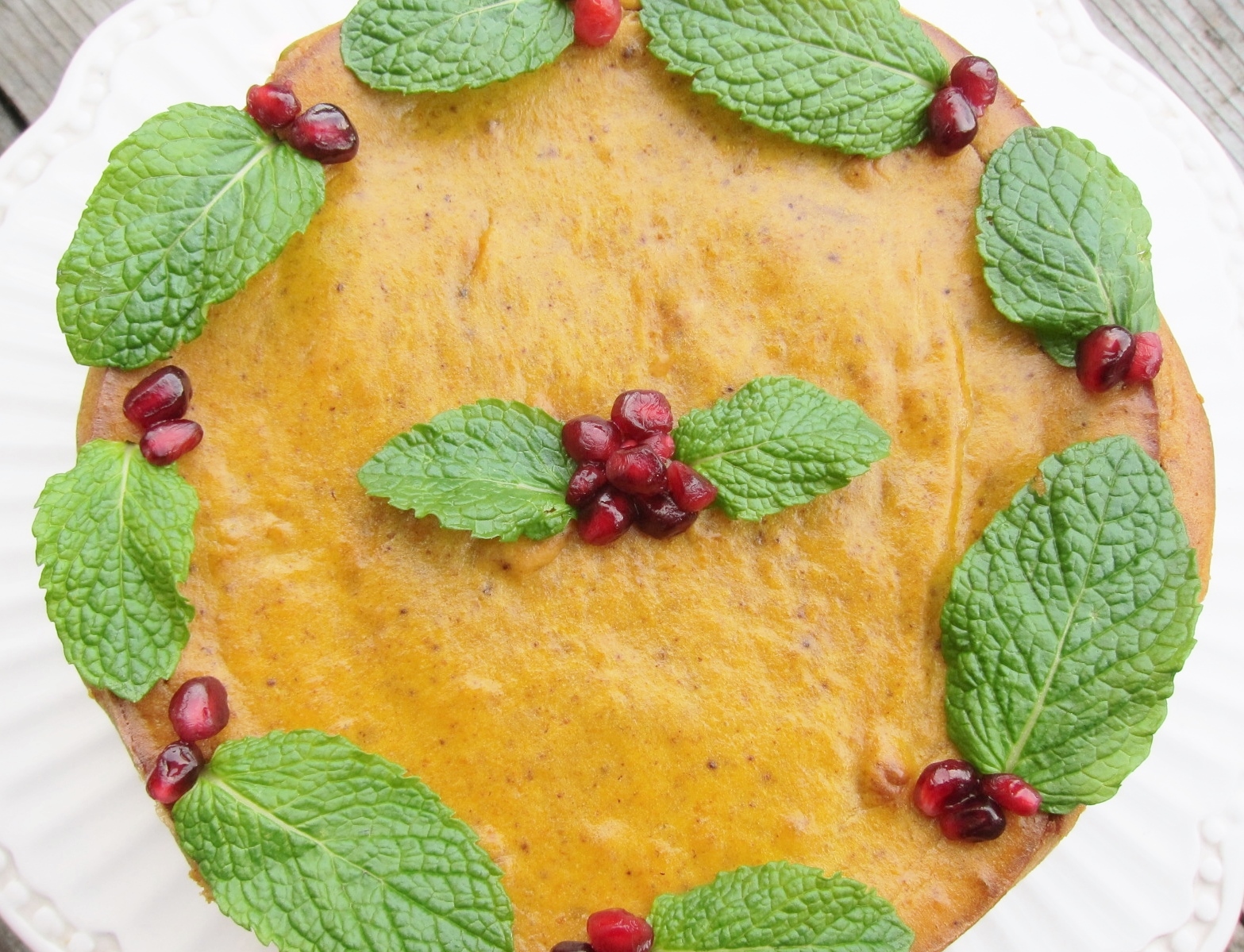 Pumpkin Pomegranate Cheesecake with a Curious Crust