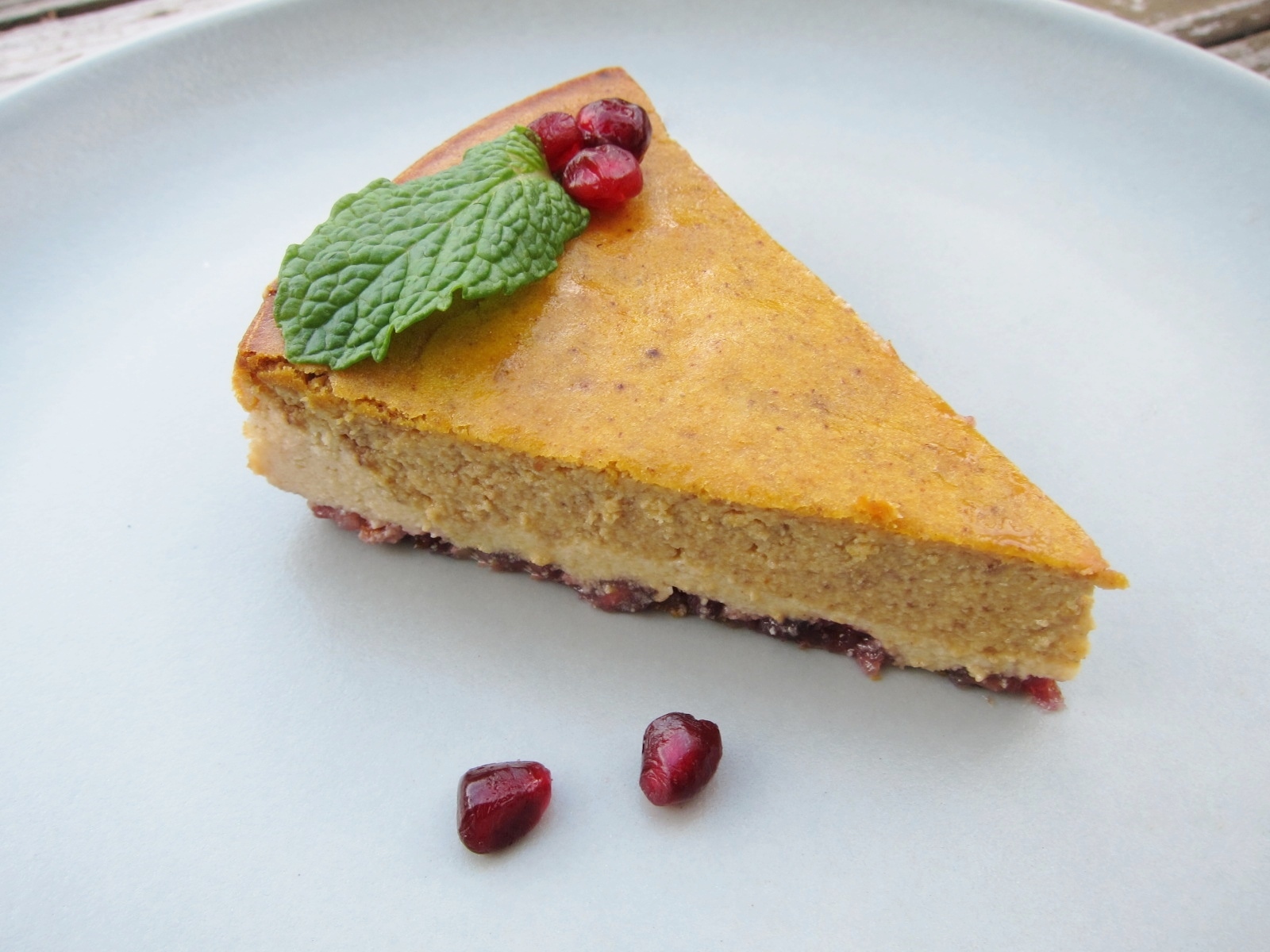 Pumpkin Pomegranate Cheesecake with a Curious Crust