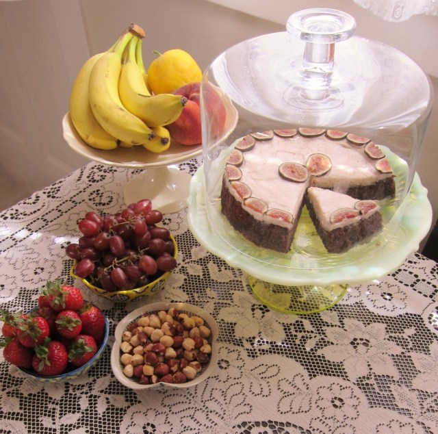 Frosted fig torte on my kitchen table.