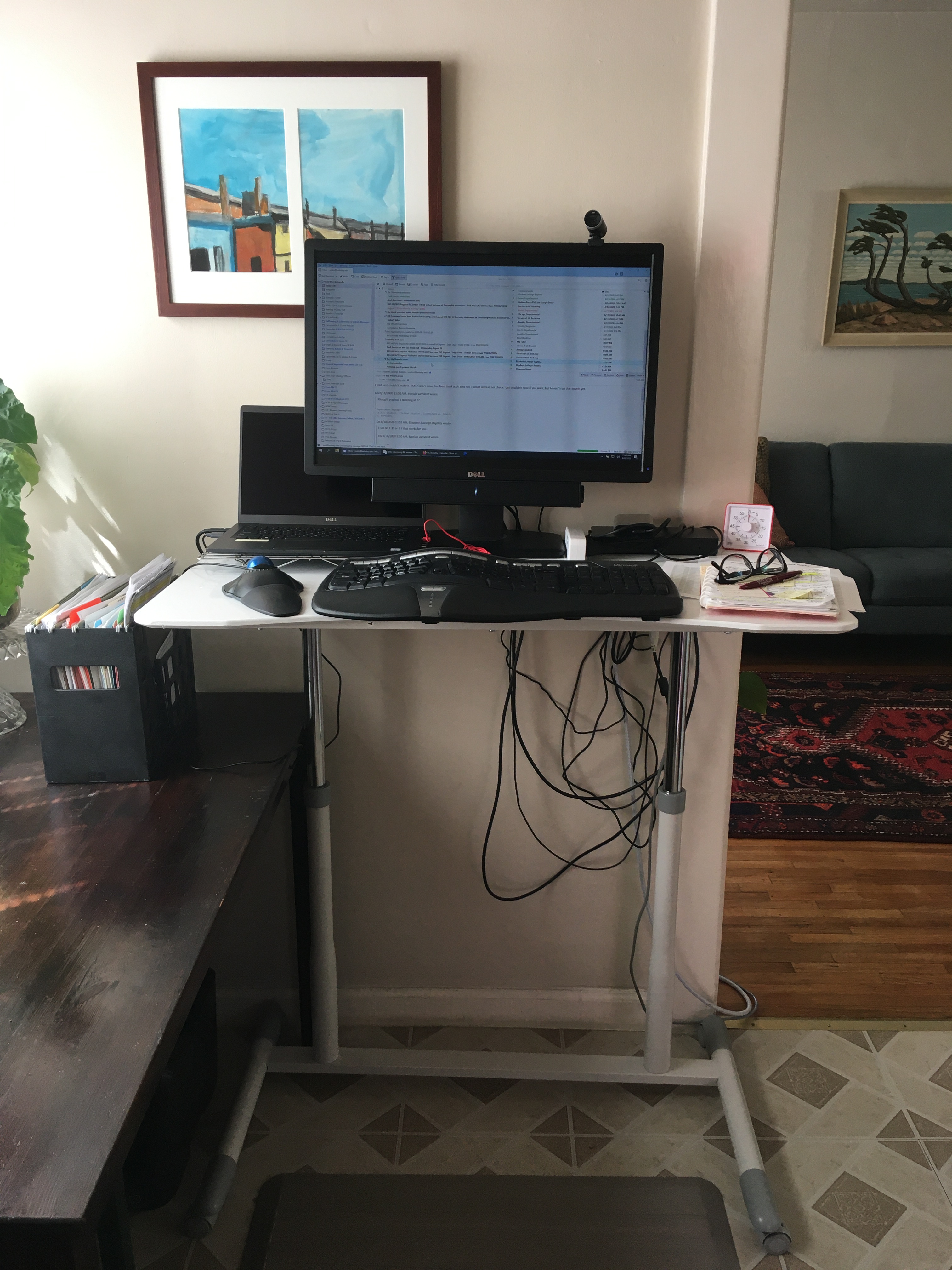 The day we were sent home in March, I left my office with a mountain of computer equipment and all the ergonomic accessories. I plopped down my workspace at this table without question, trying to balance the shock of sudden change with gratitude for my job and health. And as we all know well, the weeks went on.